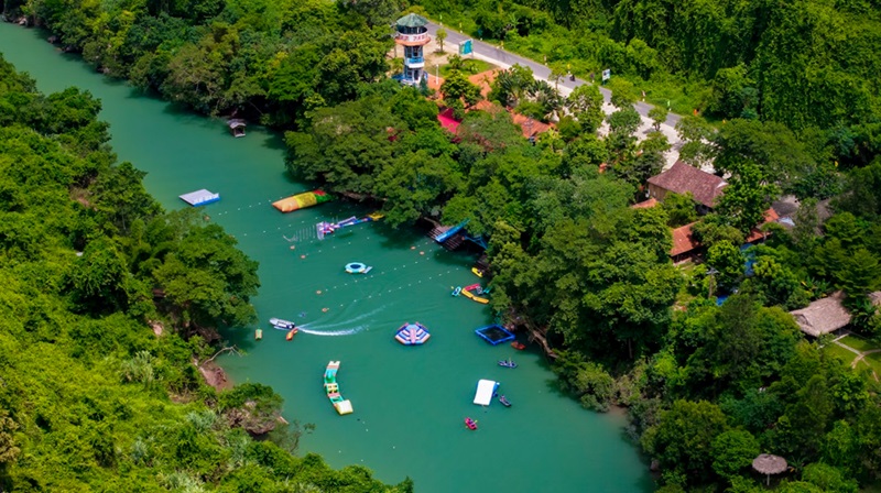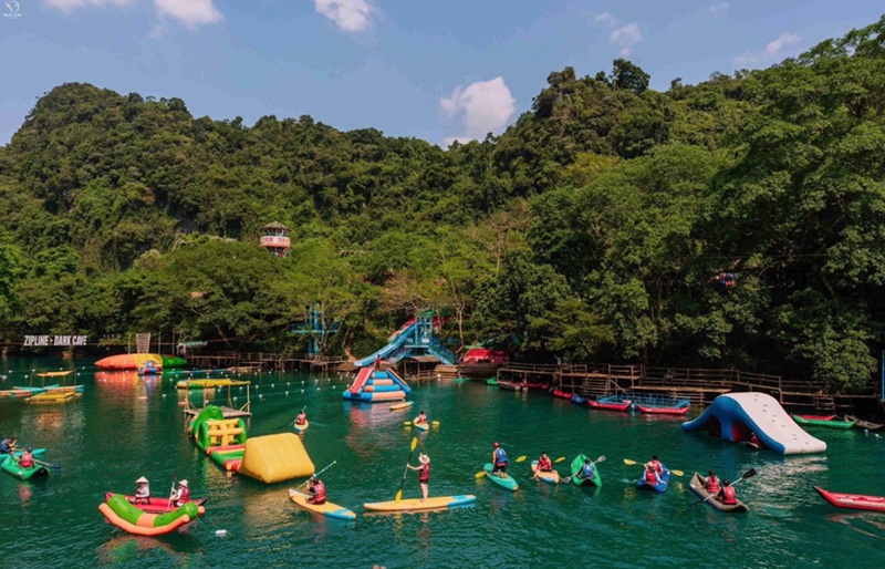 Kết thúc hành trình khám phá hang, du khách quay trở lại khu vực sông để tiếp tục tham gia các hoạt động vui chơi ngoài trời như: chèo thuyền kayak, zipline tắm sông, nhảy cầu mạo hiểm, máng trượt nước và nhiều trò chơi thể thao dưới nước hấp dẫn khác.