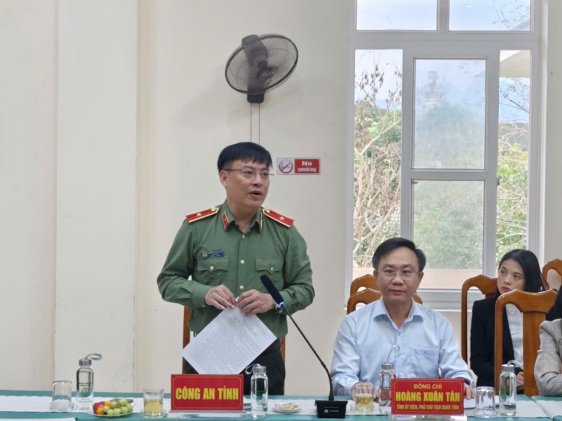 Thiếu tướng Nguyễn Thanh Liêm - Ủy viên Ban Thường vụ Tỉnh ủy, Giám đốc Công an tỉnh phát biểu tại buổi làm việc