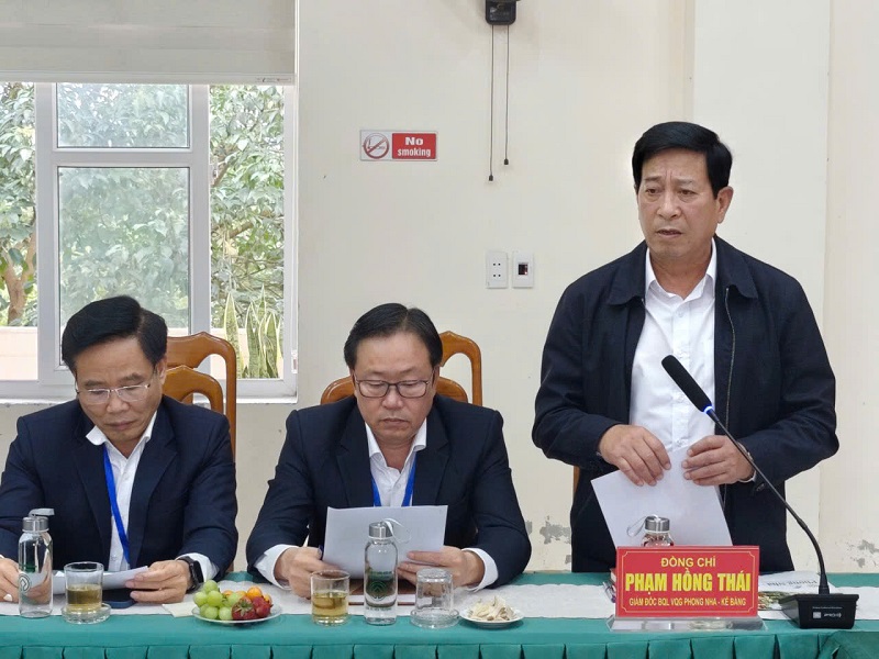 Đối với các kiến nghị, đề xuất của đơn vị, đồng chí Chủ tịch UBND tỉnh yêu cầu các sở, ban, ngành liên quan chủ động phối hợp chặt chẽ với BQL VQG PN-KB, rà soát, tham mưu giải quyết kịp thời từng nội dung cụ thể theo thẩm quyền; đồng thời nghiên cứu đề xuất cơ chế, giải pháp phù hợp nhằm tháo gỡ khó khăn, vướng mắc trong quá trình thực hiện nhiệm vụ. Qua đó, tạo điều kiện thuận lợi để đơn vị nâng cao hiệu quả công tác quản lý, bảo vệ rừng, bảo tồn và phát huy bền vững giá trị Di sản thiên nhiên thế giới Vườn quốc gia Phong Nha - Kẻ Bàng, góp phần thúc đẩy phát triển kinh tế - xã hội của tỉnh theo hướng bền vững.