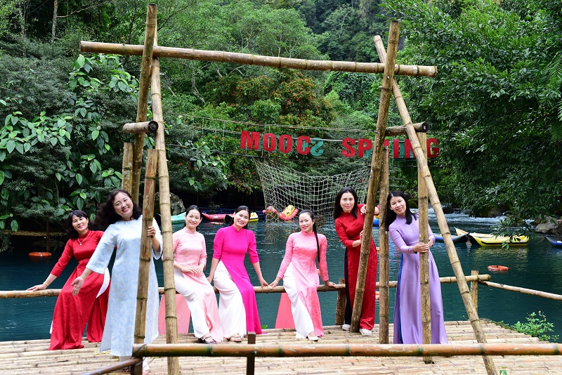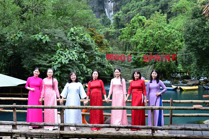 Nữ công Trung tâm Du lịch Phong Nha - Kẻ Bàng hưởng ứng Tuần lễ Áo dài